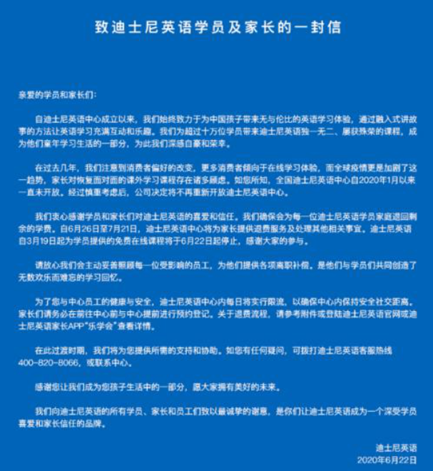 能不能再撑撑 迪士尼英语突然关停 家长们纷纷表示不舍