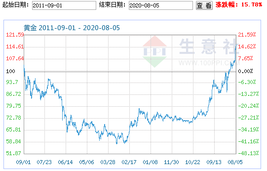 今日现货黄金价格走势分析 2020年8月12日 金市直播 黄金网 中金在线