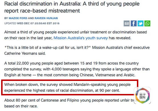 九成说普通话青年遭种族歧视 澳媒错得太离谱 新华网
