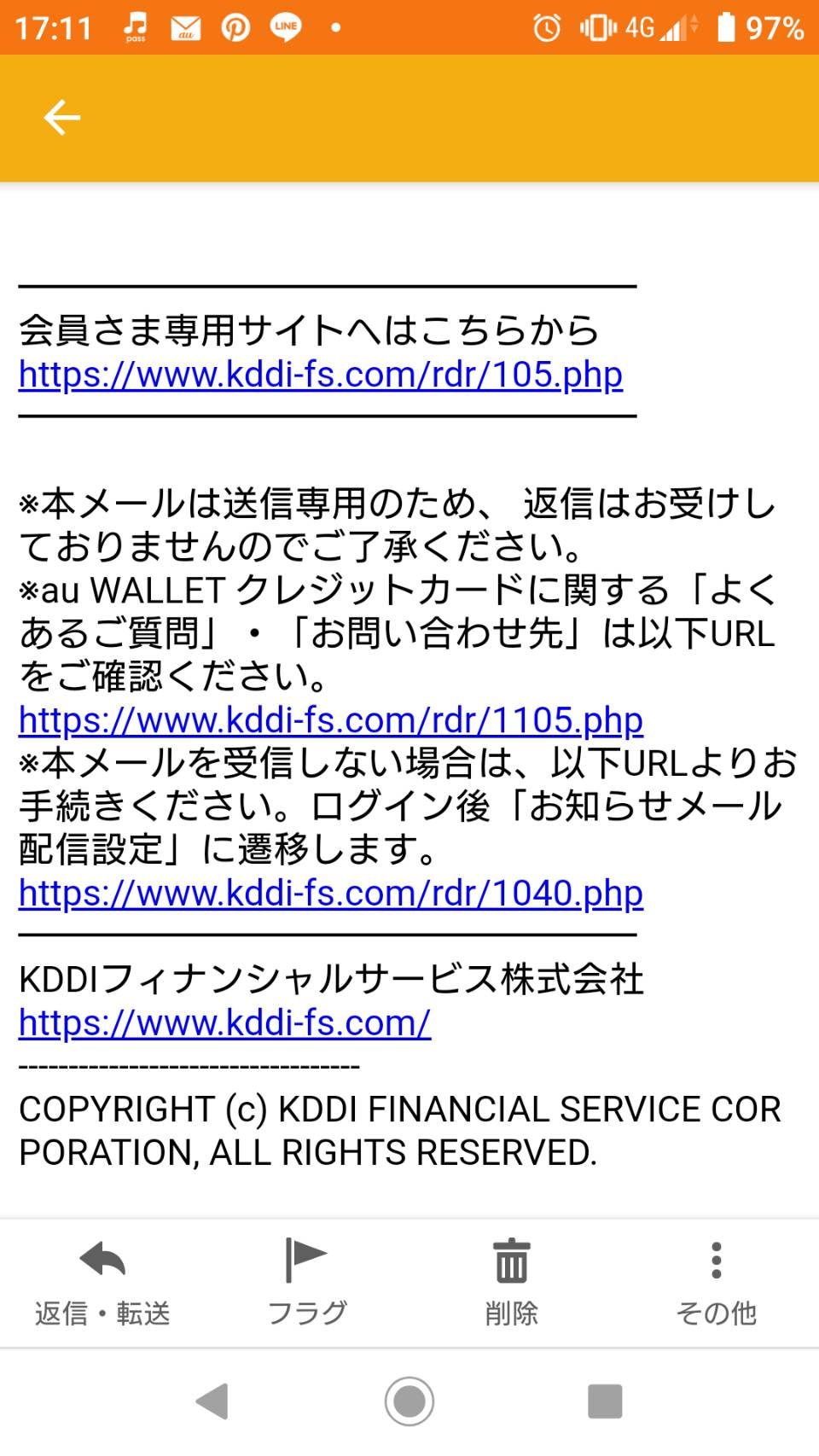 Uzivatel ひろぴ ラ Na Twitteru Auを利用している方へ Info System Kddi Fs Com Kddiフィナンシャルサービス株式会社 から ご利用速報 Wallet クレジットカード のタイトルで メールが来たら詐欺です 返信やリンク先を開かないで下さい 同様のメールに