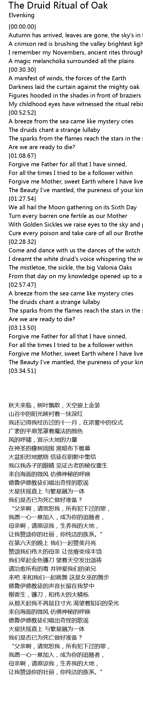 The Druid Ritual Of Oak Lyrics Follow Lyrics